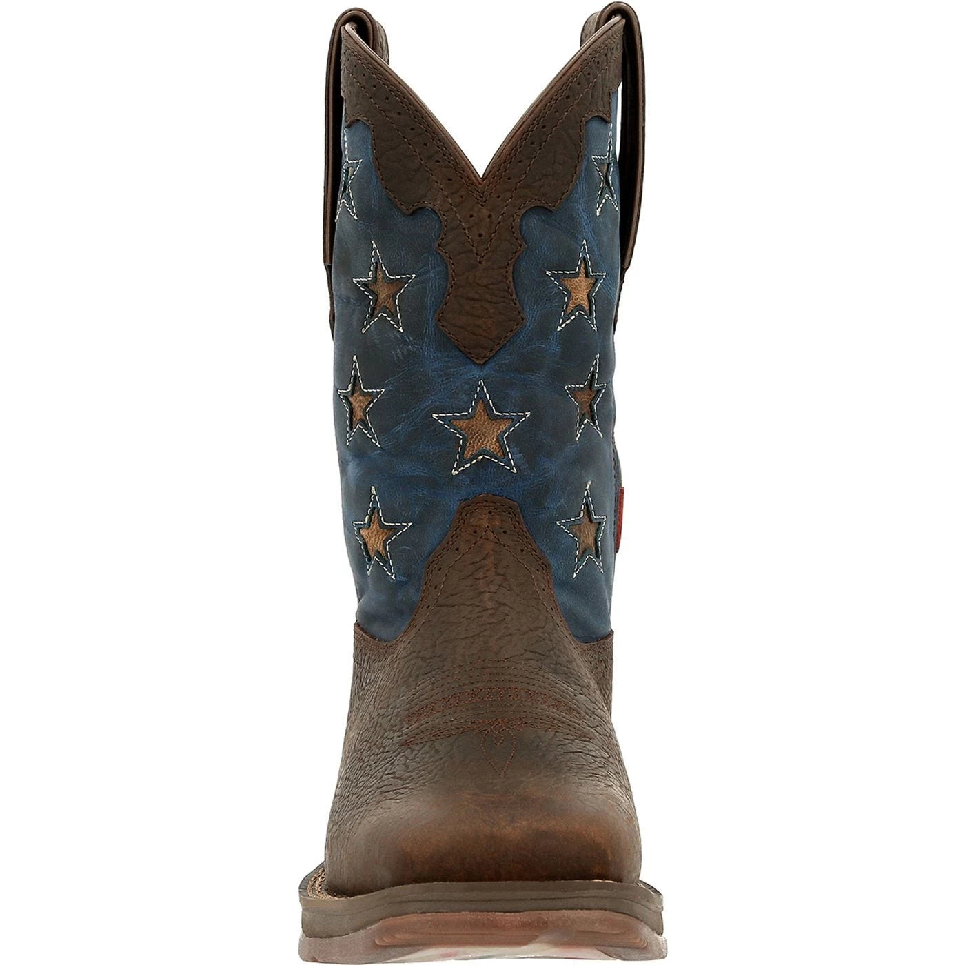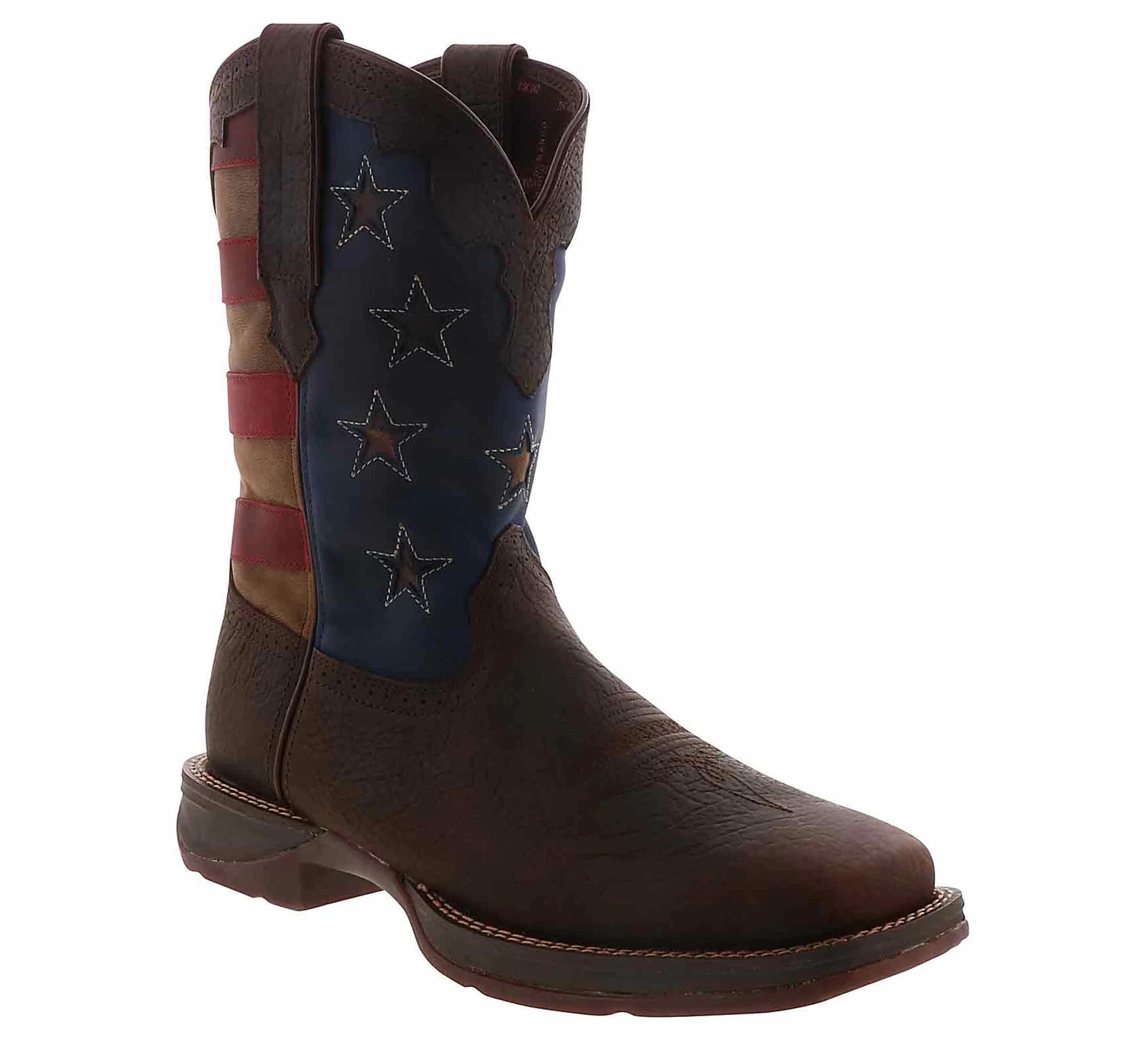 This style is distressed full-grain leather, has a soft mesh lining, the Durango X-Pand System which is a hidden gore expansion for universal fit and easy on/off, the Durango X-Treme Comfort footbed with Memory Foam and a cushion flex insole for all day comfort. The molded EVA midsole is lightweight and flexible, and the outsole is dual-density and abrasion resistant rubber. This style also features a double row sole stitch, 1.5″ rocker heel and square toe.