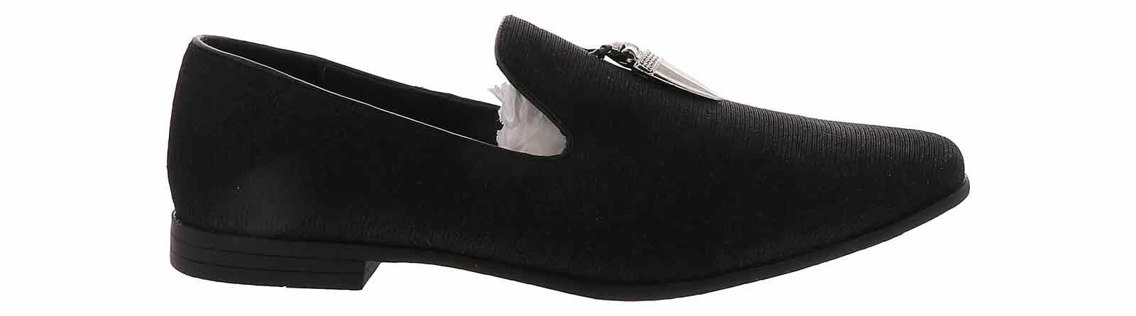 Step out in a unique and flashy style with the Giorgio Brutini Collide Black Sparkle Smoker Men’s Fashion Shoe! This sparkly black slip-on features silver charm details and a cushioned insole with a memory foam heel. Enjoy a night out on the town in the Giorgio Brutini Collide Black Sparkle Smoker Men’s Fashion Shoe!