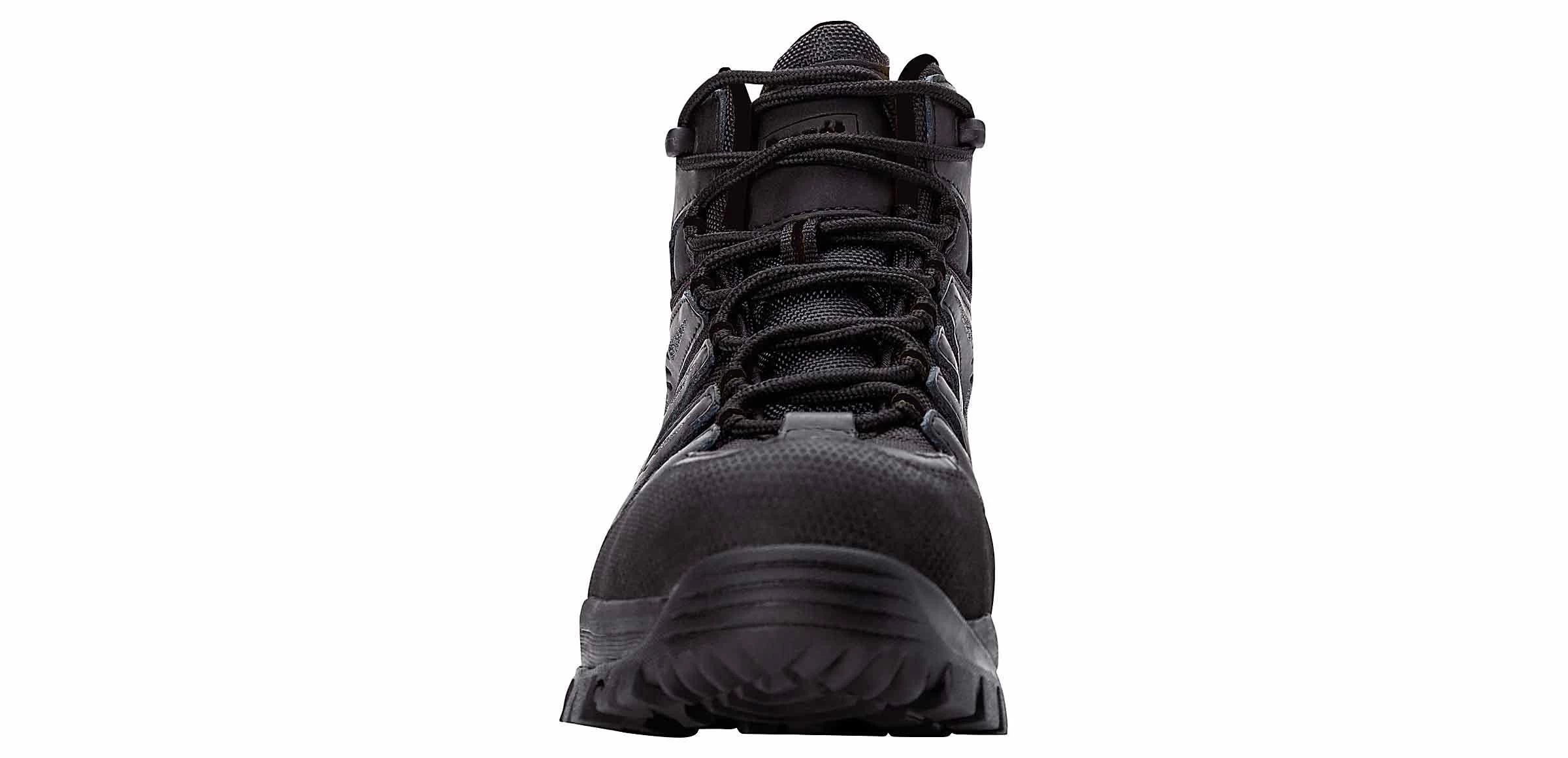 The Propet Sentry Waterproof Men’s Boot has a waterproof bootie construction inside a leather and nylon mesh upper with padded collar and tongue and abrasion resistant rubber toe cap. Embedded Puncture resistant insole plus removable Open Cell insole that moves moisture from foot for a cooler, healthier footbed. EVA midsole with high traction rubber outsole and toe guard for durable outdoor wear.