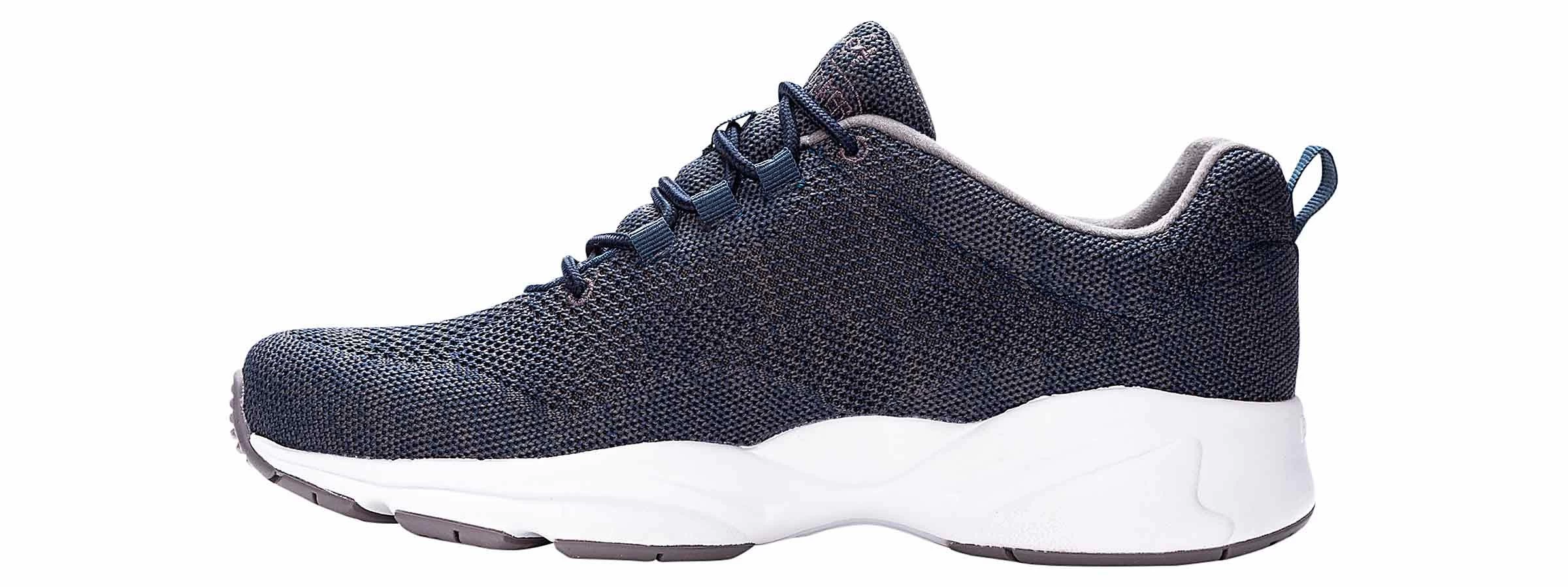 The Propet Stability Fly Men’s Sneaker is made from precision knit mesh with a roomy toe box so toes have space to spread out improving stability. Soft cushioning PU for even wear with comfort ridges in forefoot and memory foam topper. Supportive EVA midsole with rubber outsole for a long lasting smooth stride.