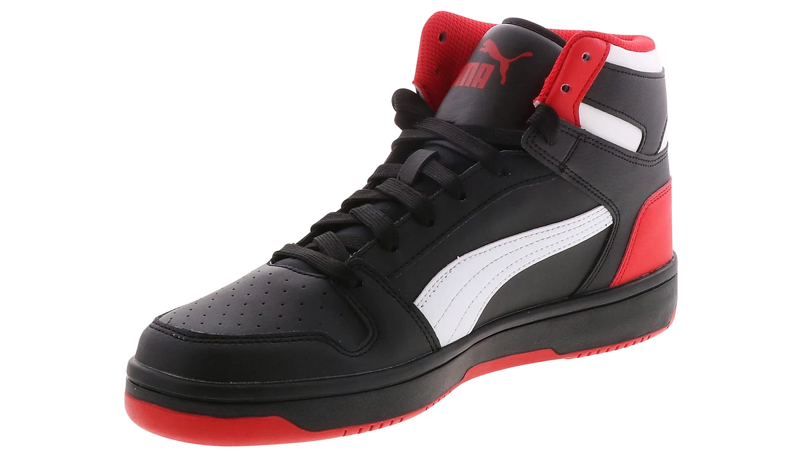 Shoot and score while wearing the Puma Rebound Layup Men’s Basketball Shoe. This mid-top shoe features a lace-up closure and padded collar. The cushioned insole provides a secure fit with extra padding.The durable outsole offers traction and stability. The Puma Rebound Layup Men’s Basketball Shoe will be your new go-to shoe!