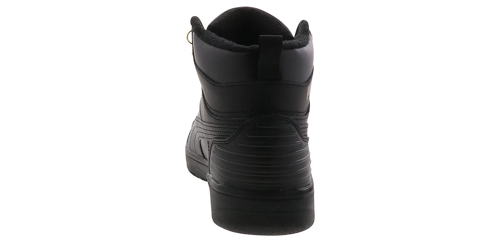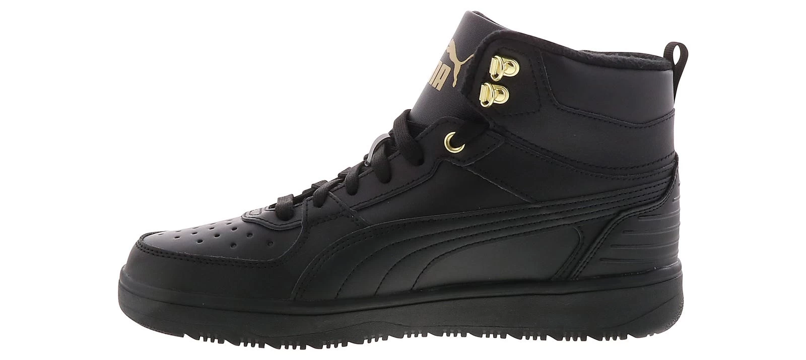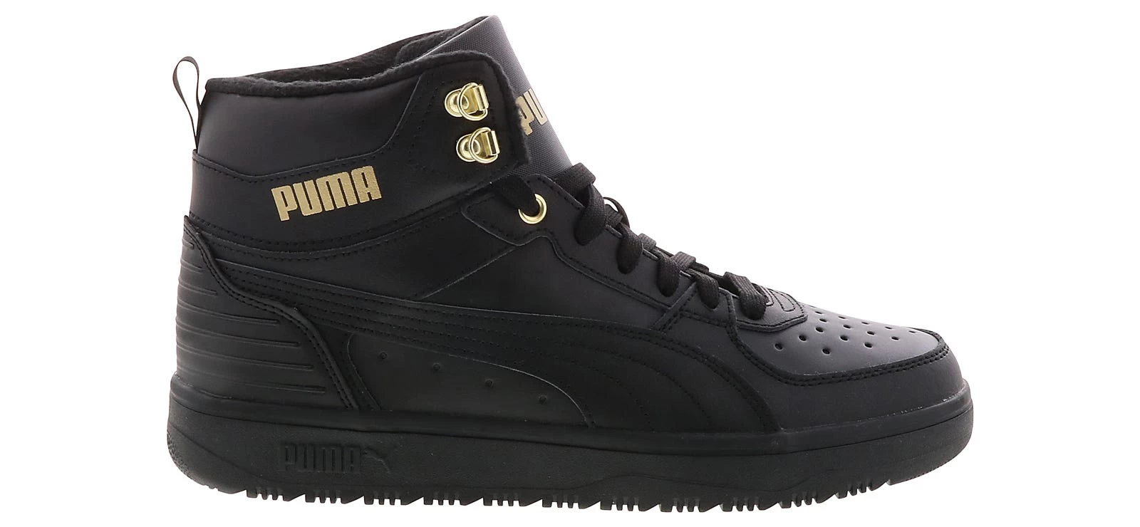 Experience ultimate comfort with the Puma Rebound Rugged Men’s Casual Sneaker Boot! This lace-up style features warm faux fur lining and a padded collar for warmth and cushion. The gold eyelets, paired with an all-sleek black color, make the Puma Rebound Rugged Men’s Casual Sneaker Boot unique and stylish!