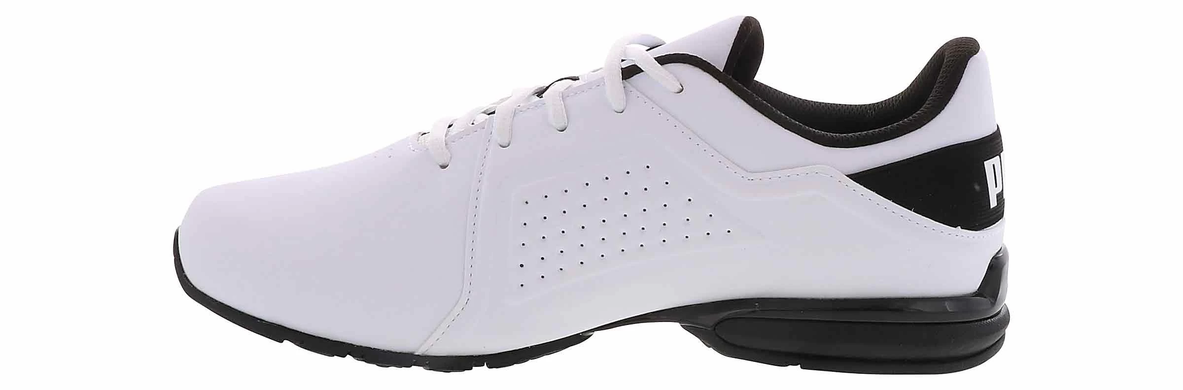 Take on every workout with a casual but comfortable style wearing the Puma Viz Runner Men’s Wide Width Running Shoe! This style has a manmade leather upper with a lace-up closure and bold Puma cat logos. With the cushioned insole and padded lining, your foot will have extra support to run the extra miles, while the durable outsole delivers traction on every surface. The Puma Viz Runner Men’s Wide Width Running Shoe will get you through difficult workouts with ease.