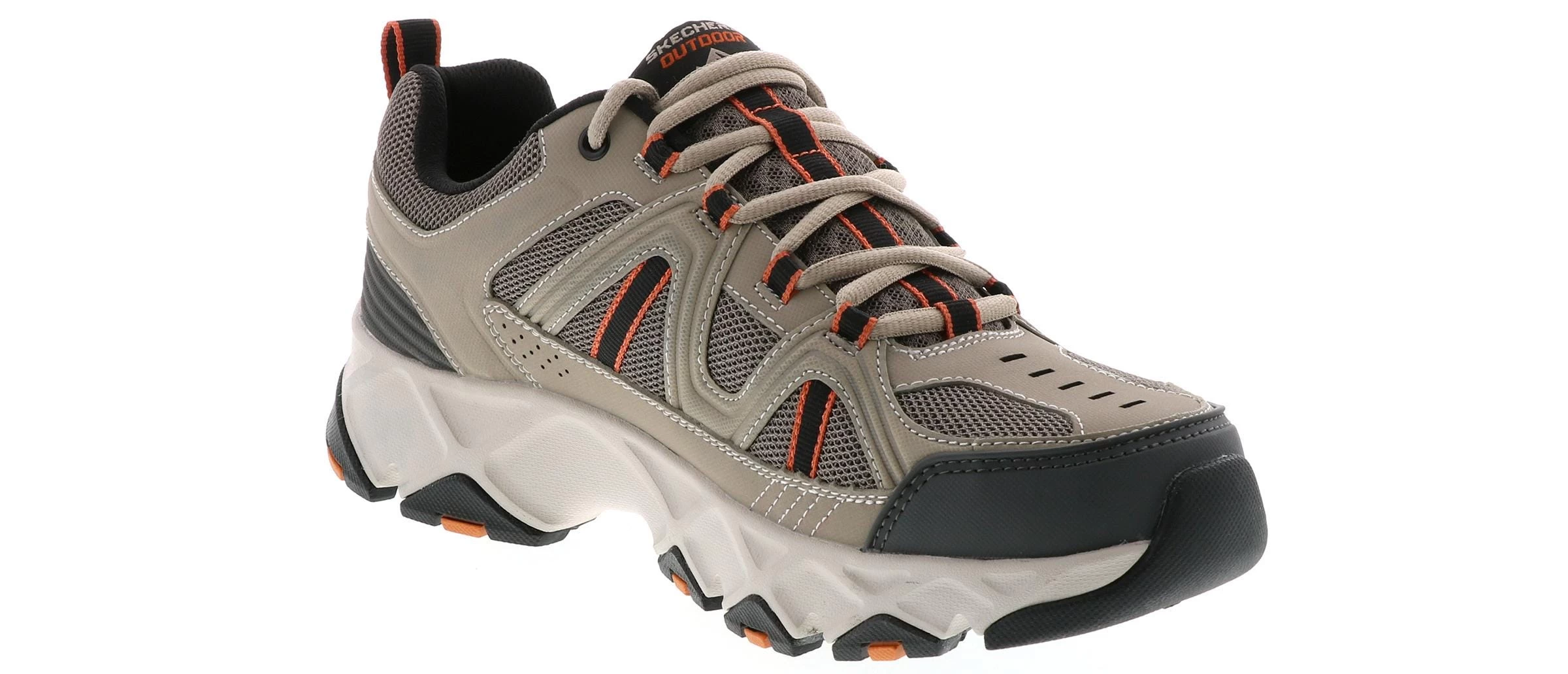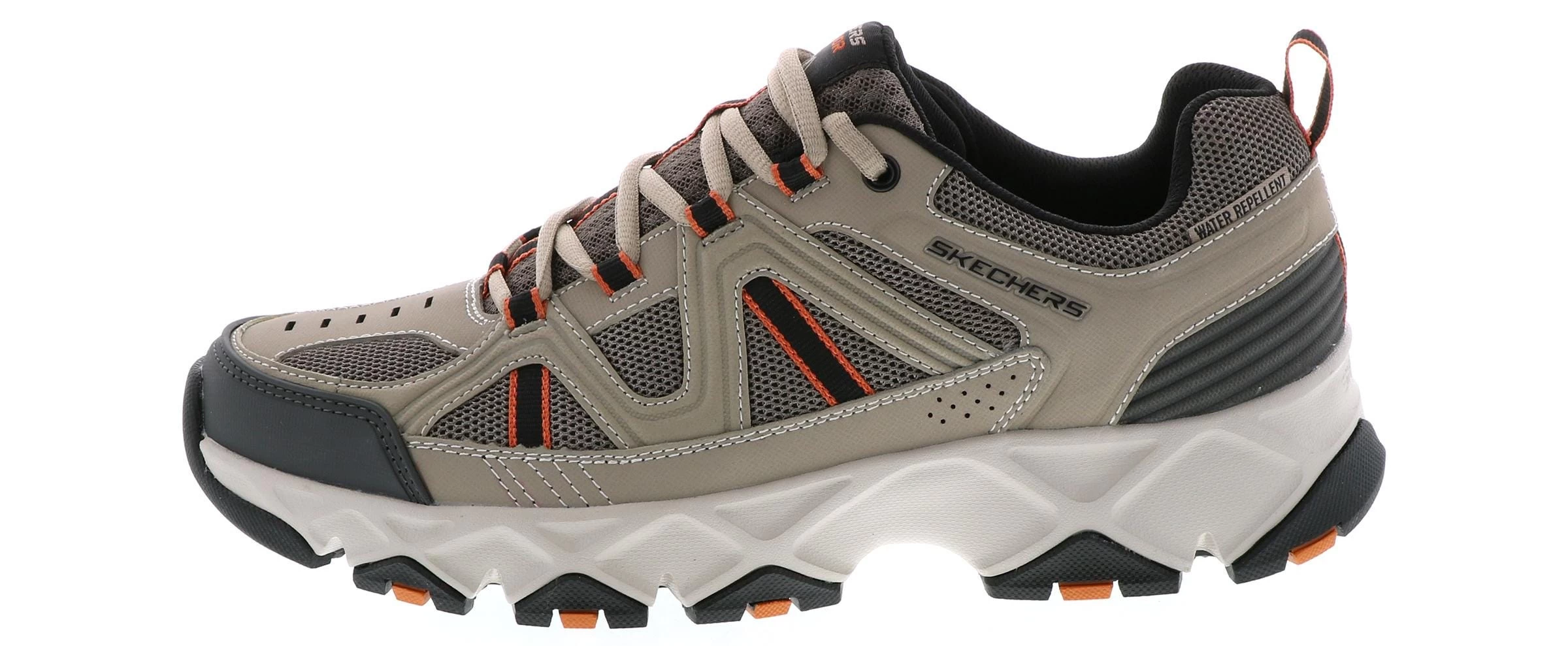 Don’t be afraid to take on any terrain in these Skechers Cross Bar hiking shoes. This style features a water repellent smooth leather upper with mesh fabric panels to help keep you cool. The Skechers Cross Bar hiking shoes have an Air Cooled Memory Foam insole to keep you cool and comfortable.