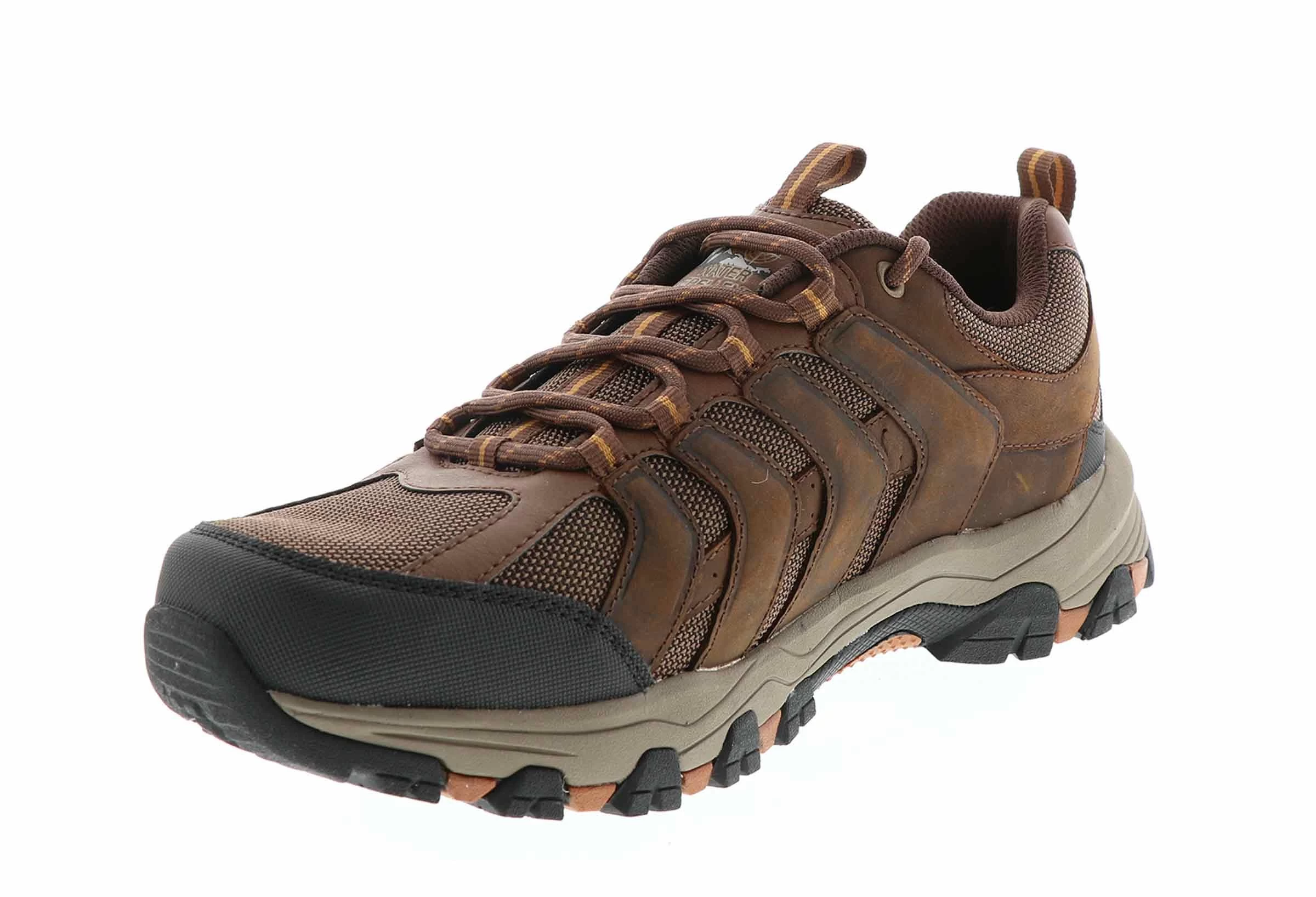Use the tongue pull on loops to slip on these SKECHERS casual shoe and head out on the steeper path of the outdoors to find the comfort of the air cooled memory foam insole. SKECHERS Selmen Lorago has the perfect combonation of durable oiled leather upper and mesh fabric panhels on the front, sides, and collar to keep your feet breathing all day long!