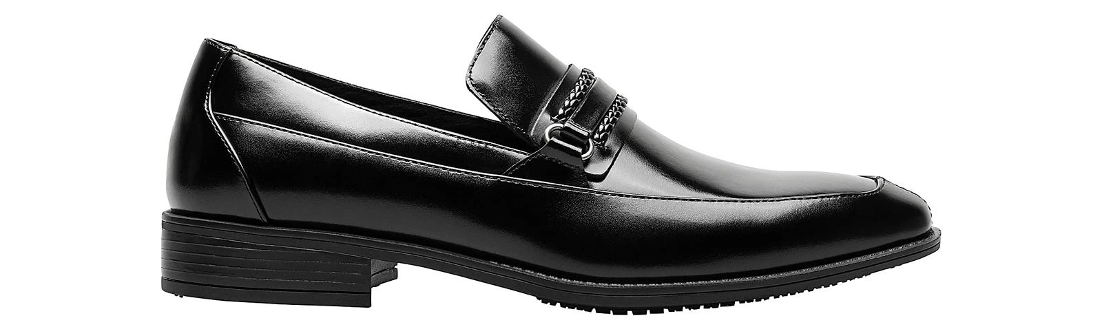 The Stacy Adams Aberdeen Moc Toe Saddle Slip On features a versatile design that rides the line between dress and casual. For work or play, you will love the comfort of its fully cushioned footbed and breathable leather linings.