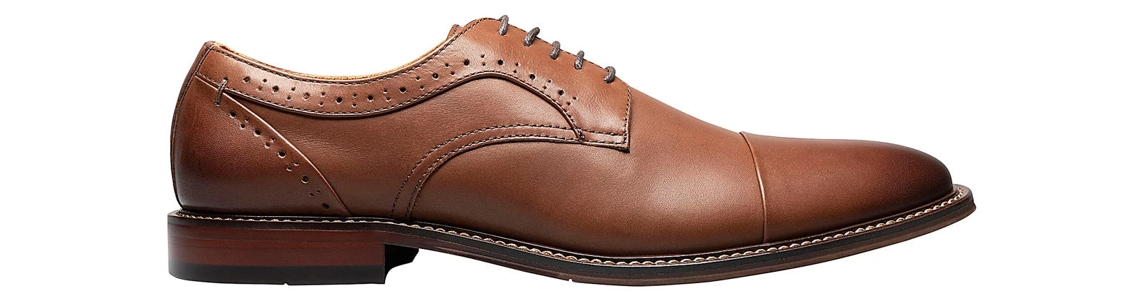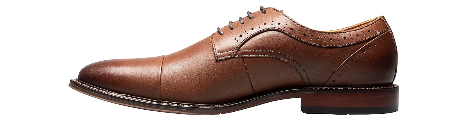 A style for every season and every reason, the Stacy Adams Maddox Cap Toe Oxford is a shoe every man should own. Sleek and elegant, the simple cap toe, perforated details, and stacked heel give it a versatile look that is easily dressed up or down.