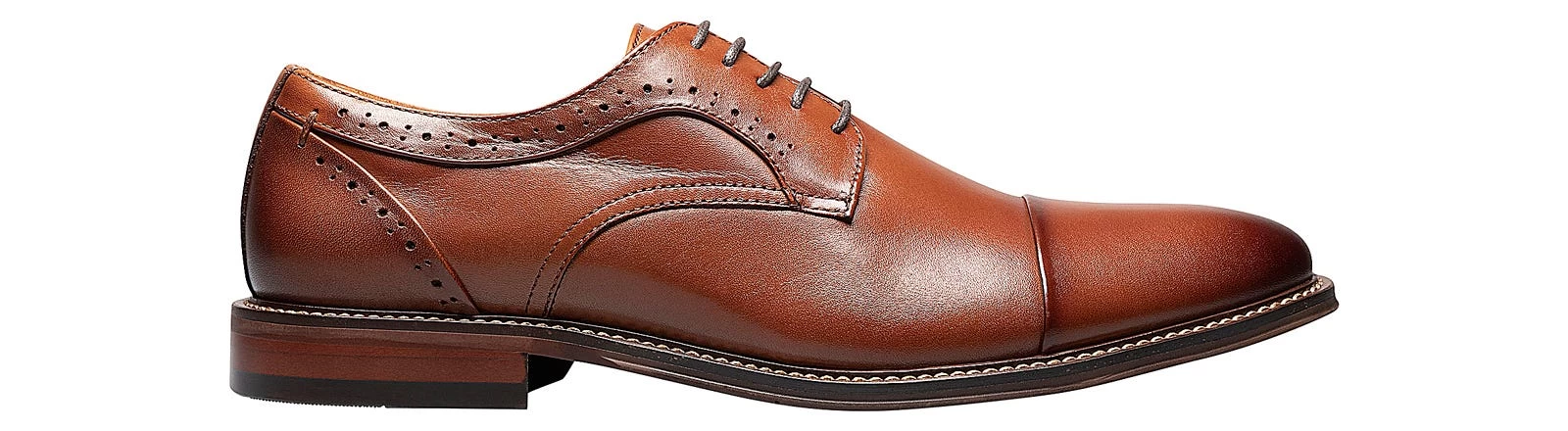 A style for every season and every reason, the Stacy Adams Maddox Cap Toe Oxford is a shoe every man should own. Sleek and elegant, the simple cap toe, perforated details, and stacked heel give it a versatile look that is easily dressed up or down.