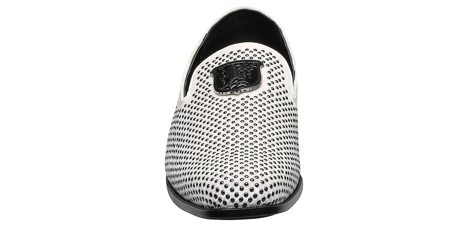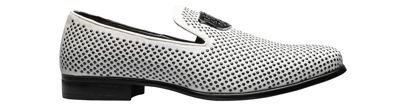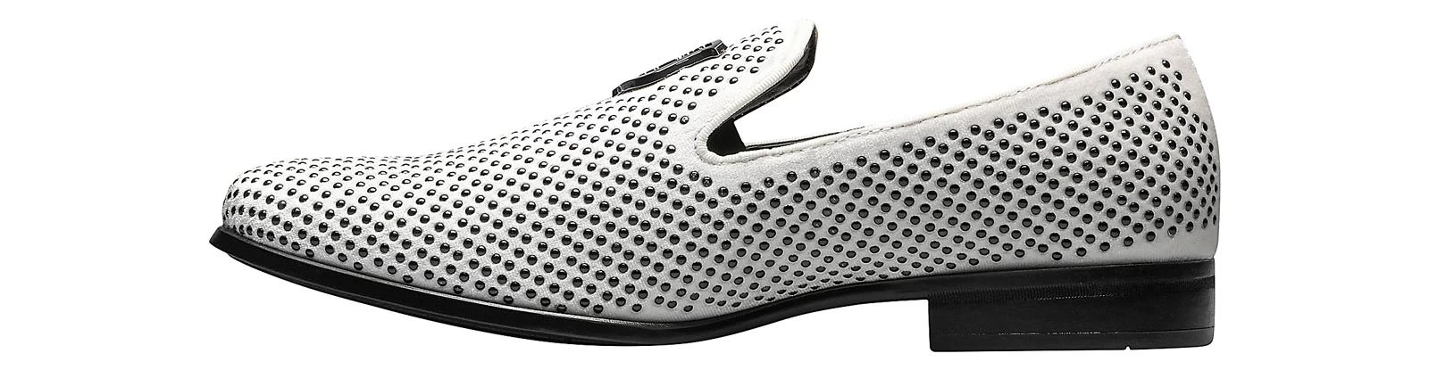 Leave no head unturned. The Stacy Adams Swagger Studded Slip On features a fabric upper covered from heel to toe in dazzling studs. The dress style sole and sleek profile is topped off with the famous Stacy Adams crest. Go ahead, get your Swagger on.