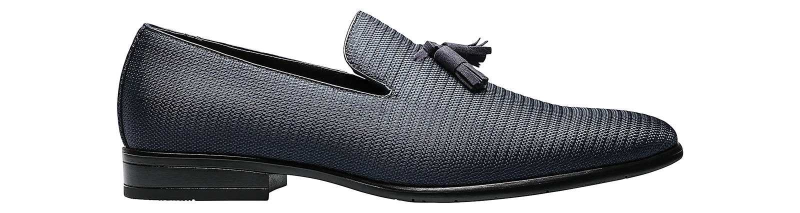 The Stacy Adams Tazewell Plain Toe Tassel Slip On features a patterned upper with a tonal suede look tassel and a dress rubber sole. Inside, the fully cushioned footbed and leather linings add all-day comfort to its fashion forward style.