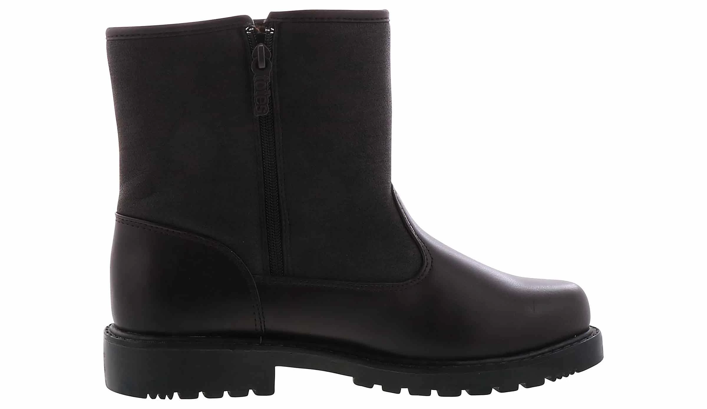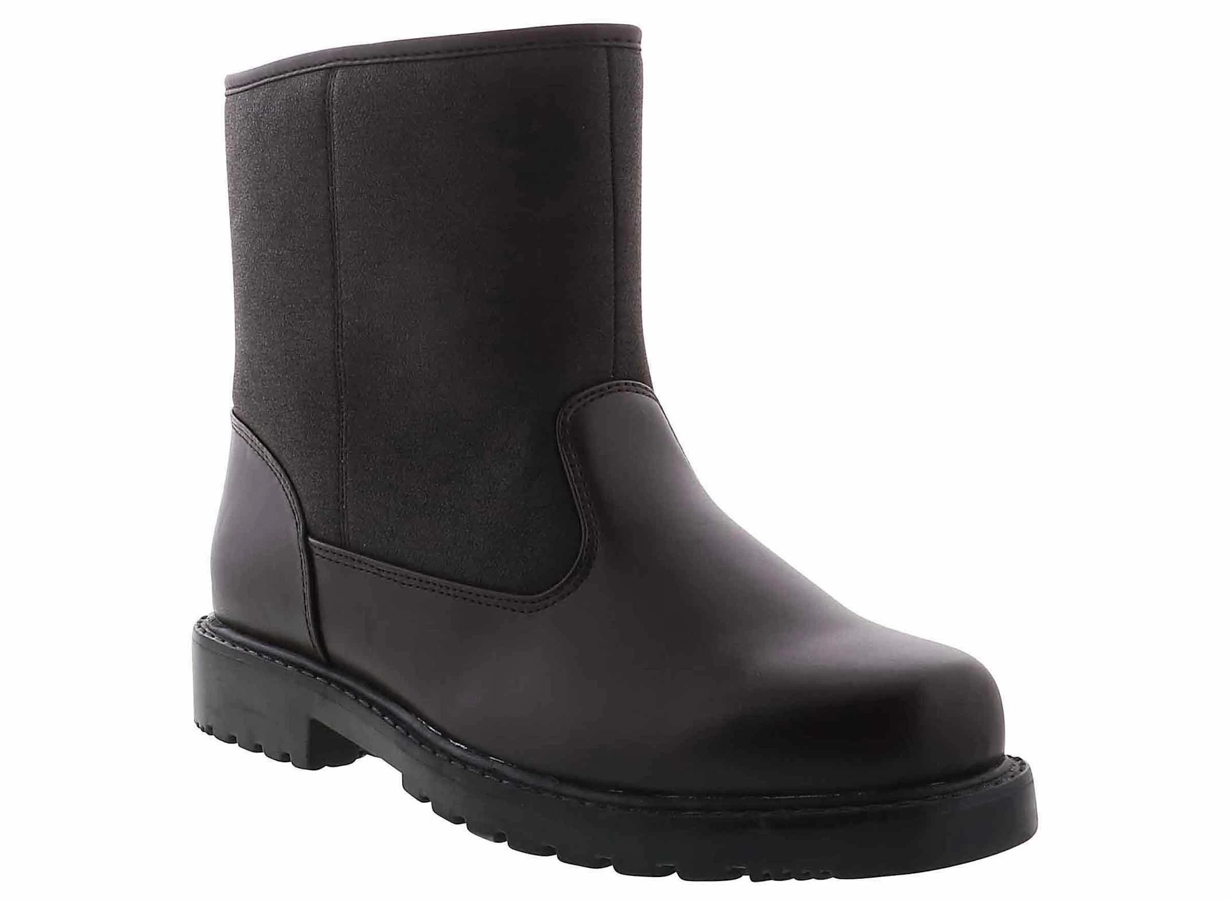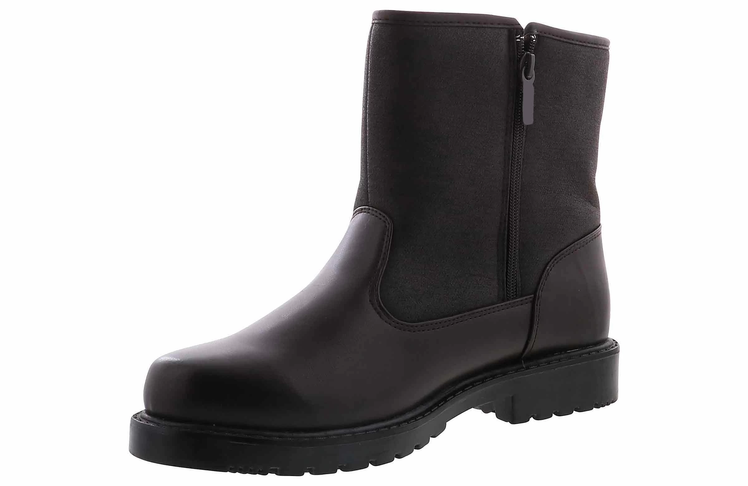 The Totes Granite Men’s Snow Boot will beat the weather during any occasion! The dressy faux leather upper and round toe detailing make this style. The cushioning fabric lining and padded footbed keep you comfortable through it all. You can’t forget about the slip-resistant, durable outsole. Stick with the Totes Granite Men’s Weather Boot and you’ll stay dry and cozy!