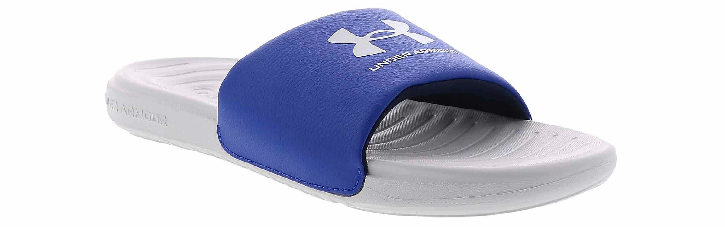 Look Sporty but stay comfortable in the Under Armour Ansa Fixed Athletic Slide Sandals. This slide has a fixed strap with added padding underneath for an extra comfortable fit. The insole is cushioned and the outsole is lightweight and durable.