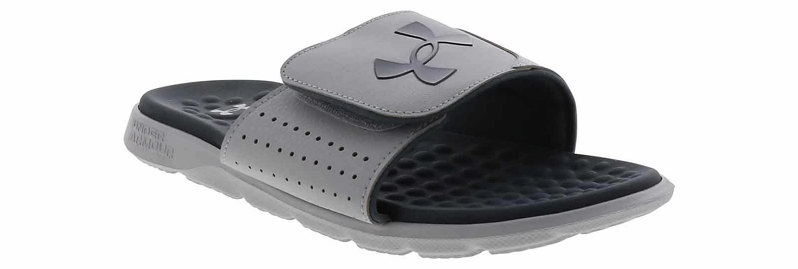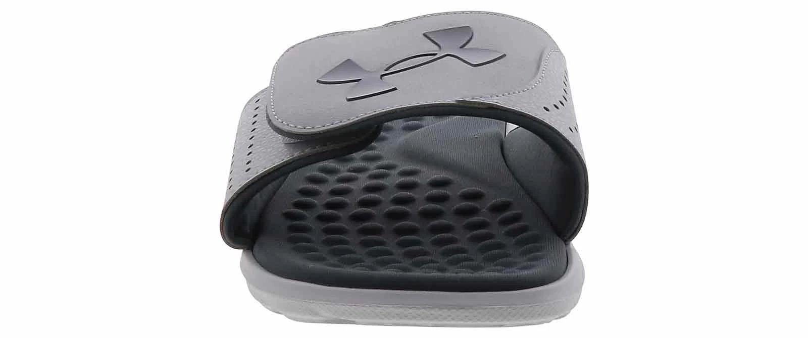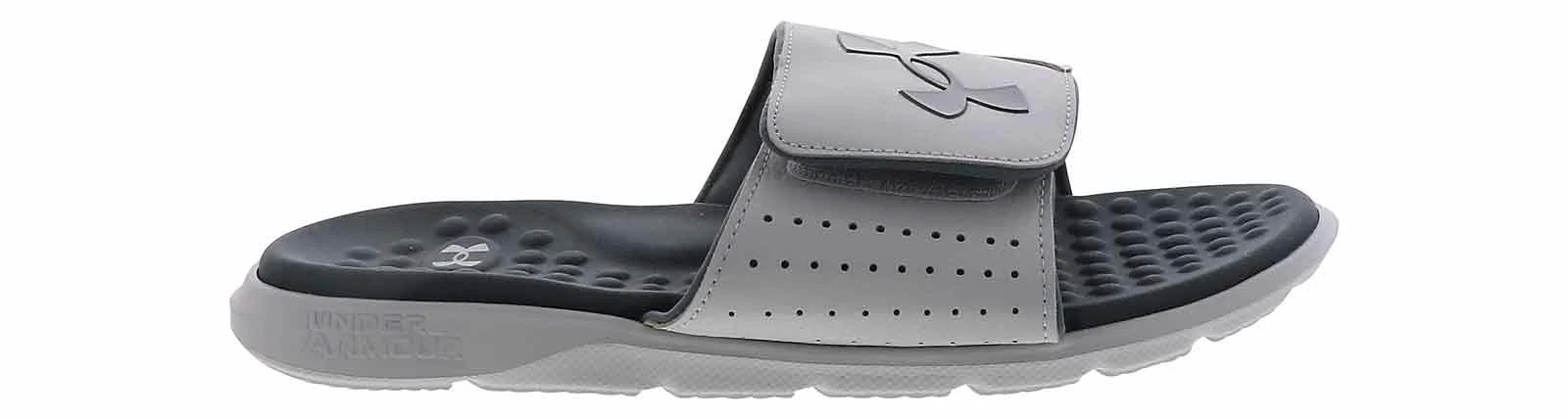 Ignite your days with the Under Armour Ignite Pro Men’s Slide Sandal! This lightweight and breathable designed slide features a slip-on closure with an adjustable hook-and-loop strap. The convenience of this grey-and-white style is unmatched and will undoubtedly become one of your favorites. Whether you are lounging by the pool or running errands around town, the Under Armour Ignite Pro Men’s Slide Sandal is the perfect choice for those looking for a combination of style, comfort, and performance!